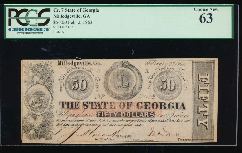 One 1862 $50 State of Georgia Obsolete Note PCGS 63.