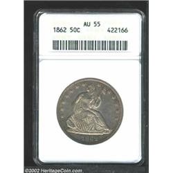 1862 50C AU55 ANACS. Sharply struck with even golden-brown toning over each side.From the Ohio Colle