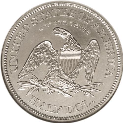 <B>1862 50C Half Dollar, Judd-295, Pollock-353, R.5, PR63 NGC.</B></I> The obverse is the regular issue design for the 1862 Seated Liberty half dollar. The reverse is similar to the regular issue design with the motto GOD OUR TRUST in the field above the eagle. Struck in silver with a reeded edge. It is believed that about 25 sets were struck with this design variant. Fully struck, the brilliant surfaces are slightly hazy and lightly hairlined.<BR><BR><b>Shipping:</b> Coins & Currency (<a target="_blank" href="http://www.heritageauctions.com/common/shipping.php">view shipping information</a>)