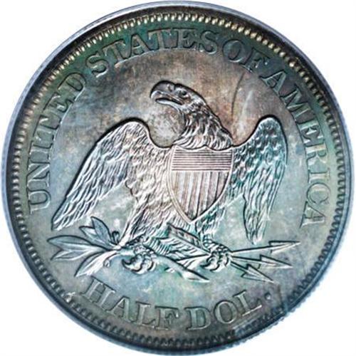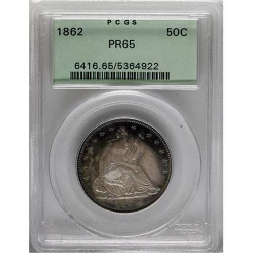 <B>1862 50C PR65 PCGS.</B></I> Splendid cherry-red, gold, apple-green, cream-gray, and silver-white toning embraces this intricately struck Gem. A Civil War date with a proof mintage of only 550 pieces. Desirable in such consummate quality. Encapsulated in a green label holder. Population: 15 in 65, 3 finer (4/07).<BR><I>From The Vanek Collection.</B></I><BR><BR><b>Shipping:</b> Coins & Currency (<a target="_blank" href="http://www.heritageauctions.com/common/shipping.php">view shipping information</a>)