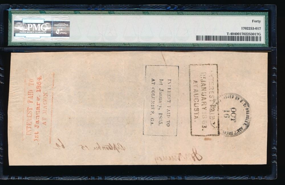 One 1862-63 $100 Confederate States of America Note PMG 40.