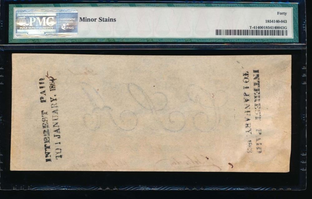One 1862-63 $100 Confederate States of America Note PMG 40.