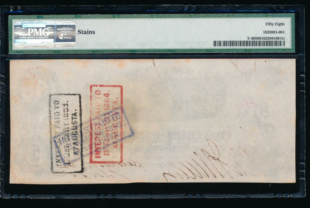 One 1862-63 $100 Confederate States of America Note PMG 58.