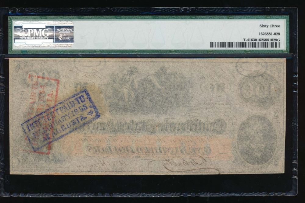 One 1862-63 $100 Confederate States of America Note PMG 63.