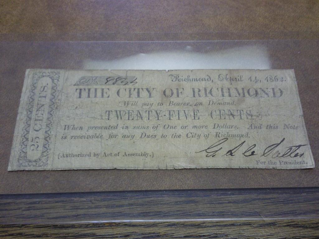 1862 CITY OF RICHMOND 25 CENTS HAND SIGNED & # ERD
