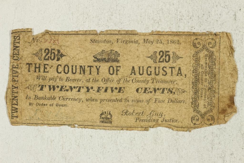 1862 COUNTY OF AUGUSTA 25 CENT OBSOLETE BANK NOTE