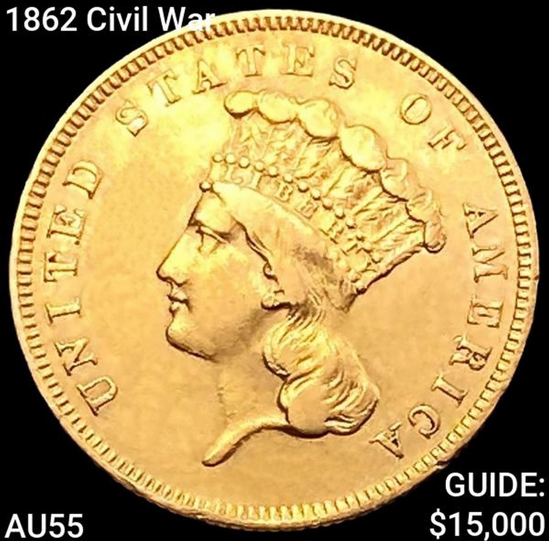 1862 Civil War $3 Gold Piece HIGH GRADE