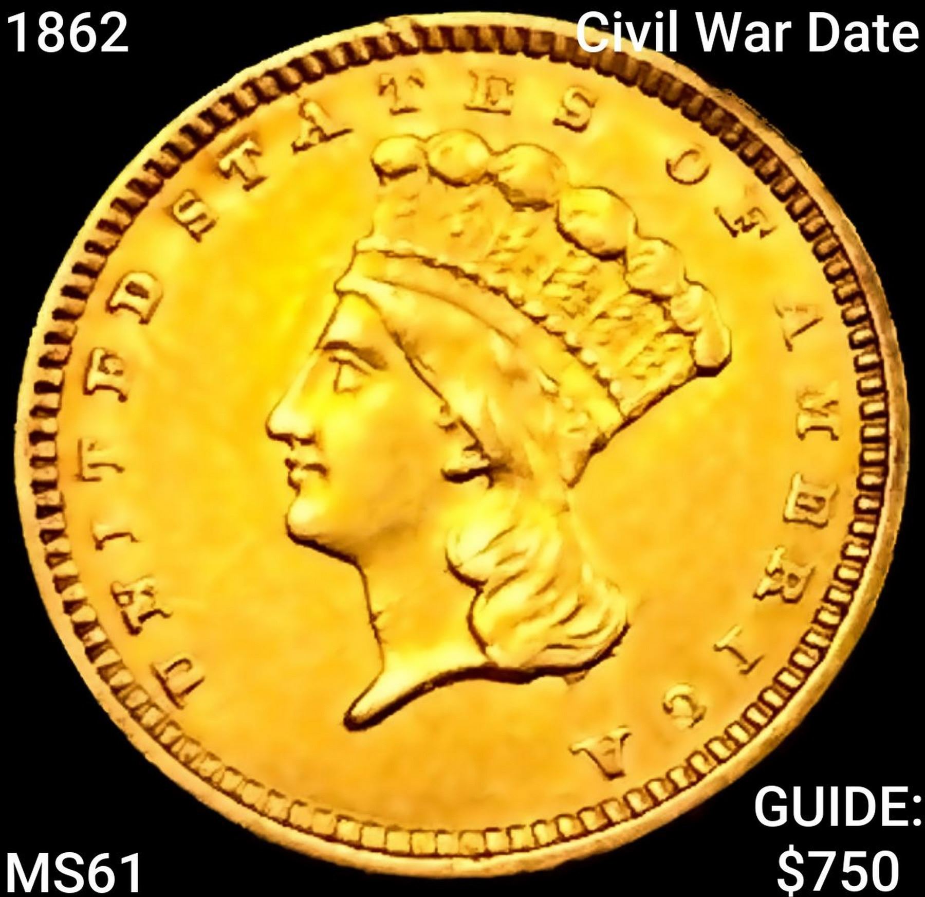 1862 Civil War Date Rare Gold Dollar UNCIRCULATED