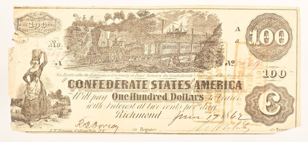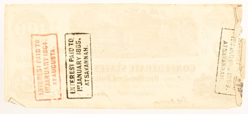 Augusta and Savannah Georgia area, stamped on back of note.