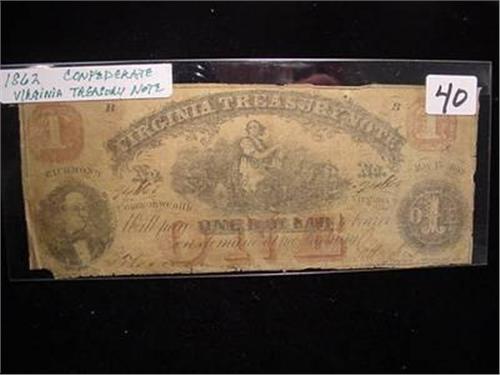 1862 Confederate Virginia Treasury Note (144 Yrs. Old)