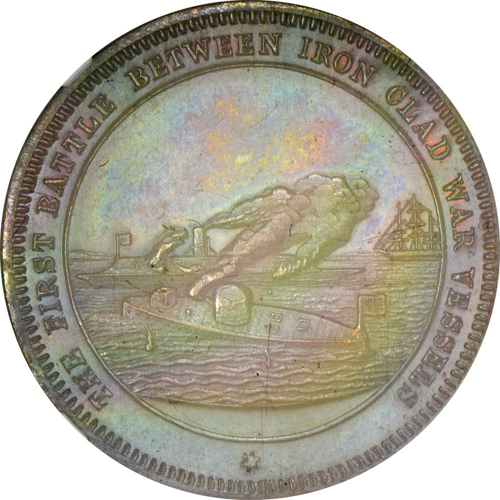1862-Dated Ironclads First Battle. Schenkman-MM4. Copper. Plain Edge. MS-64 BN NGC.