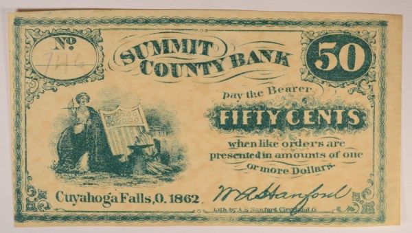 1862 FIFTY CENT SUMMIT BANK NOTE CUYAHOGA FALLS, OH