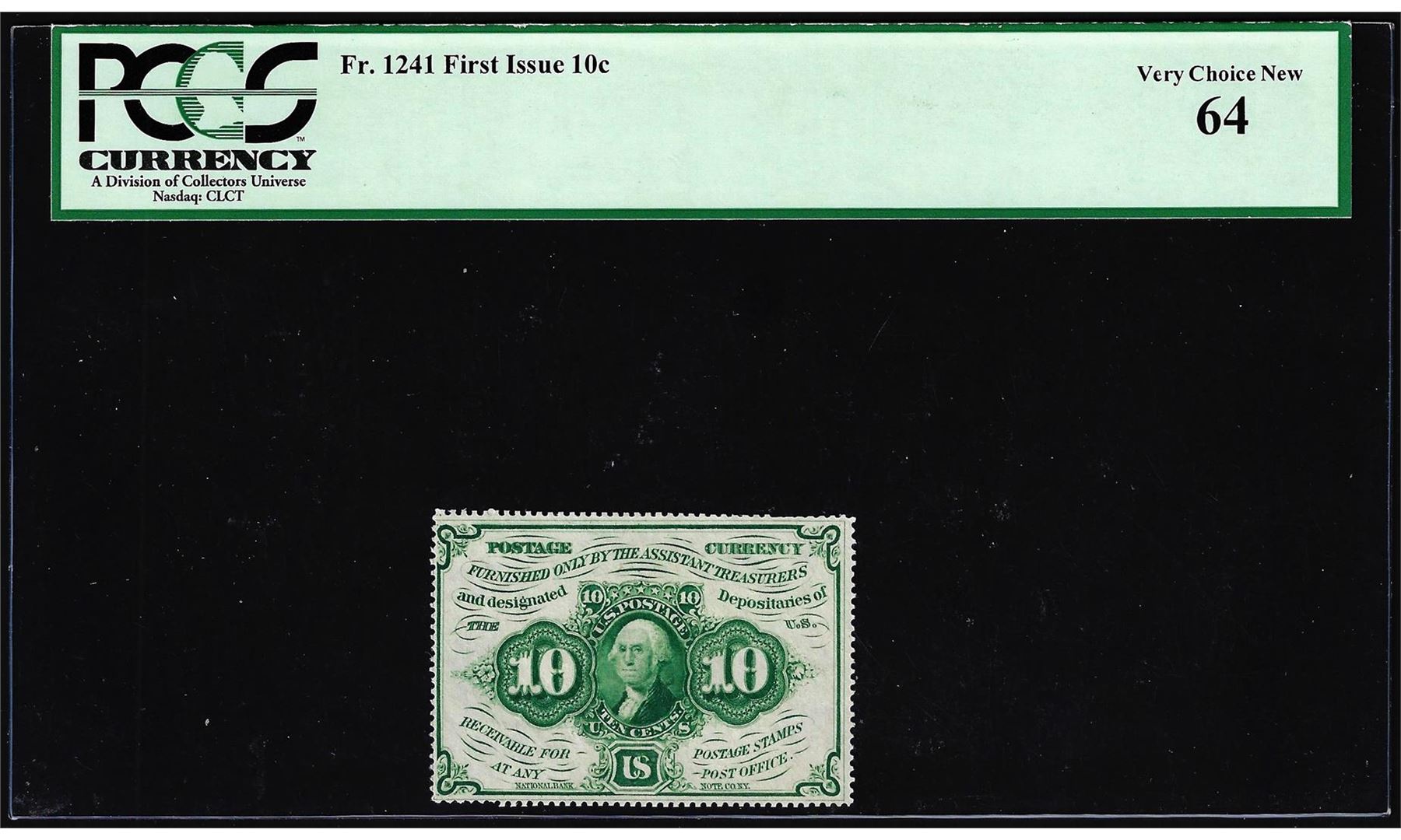1862 First Issue 10 Cent Fractional Currency Note Fr.1241 PCGS Very Choice New 64