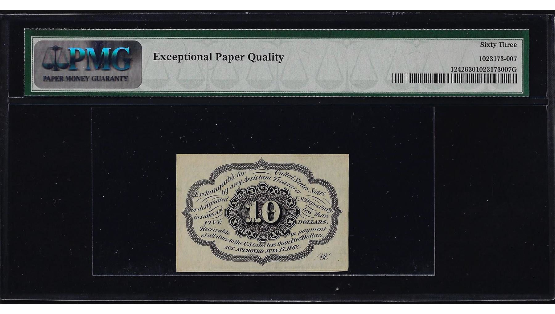 1862 First Issue 10 Cent Fractional Currency Note PMG Choice Uncirculated 63EPQ