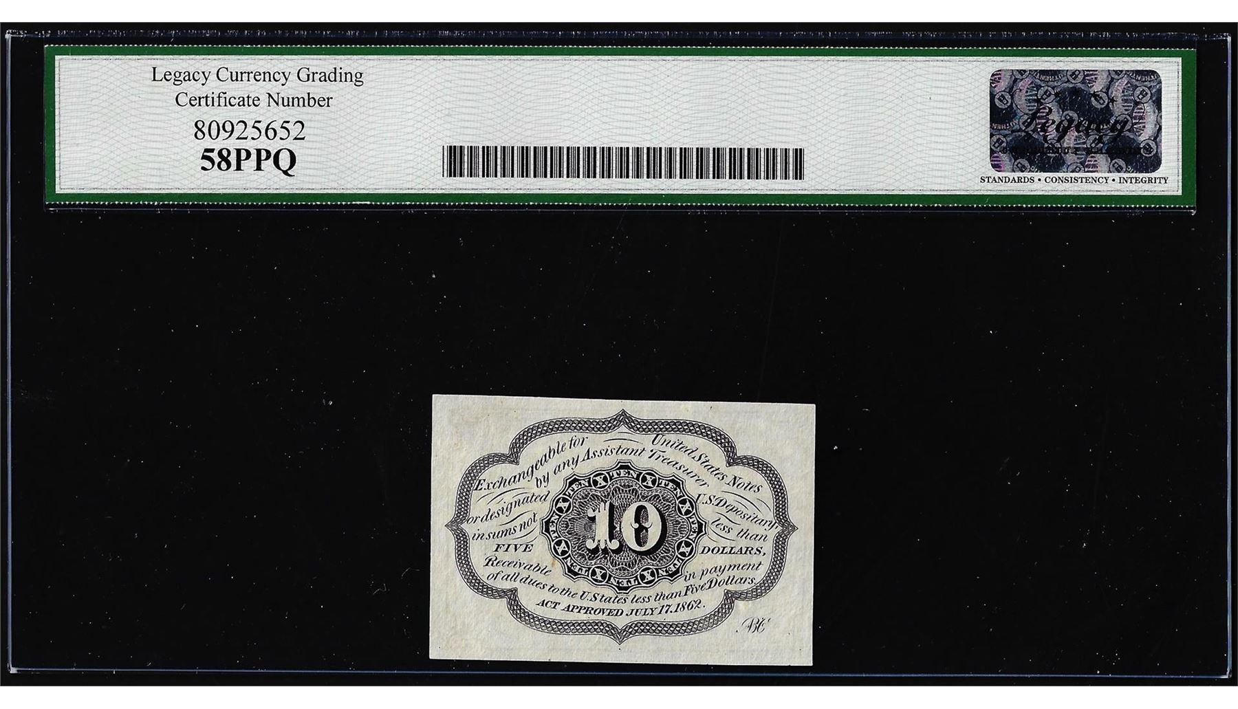 1862 First Issue 10 Cent Fractional Note Fr.1242 Legacy Choice About New 58PPQ