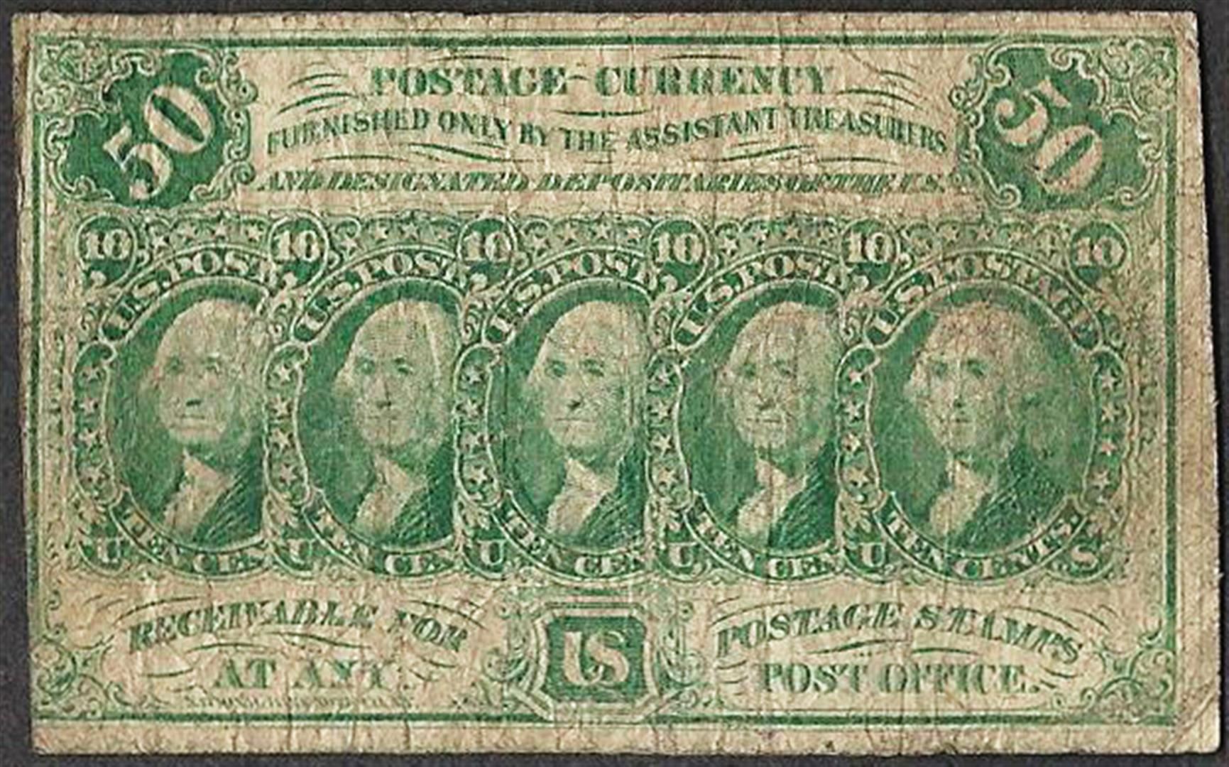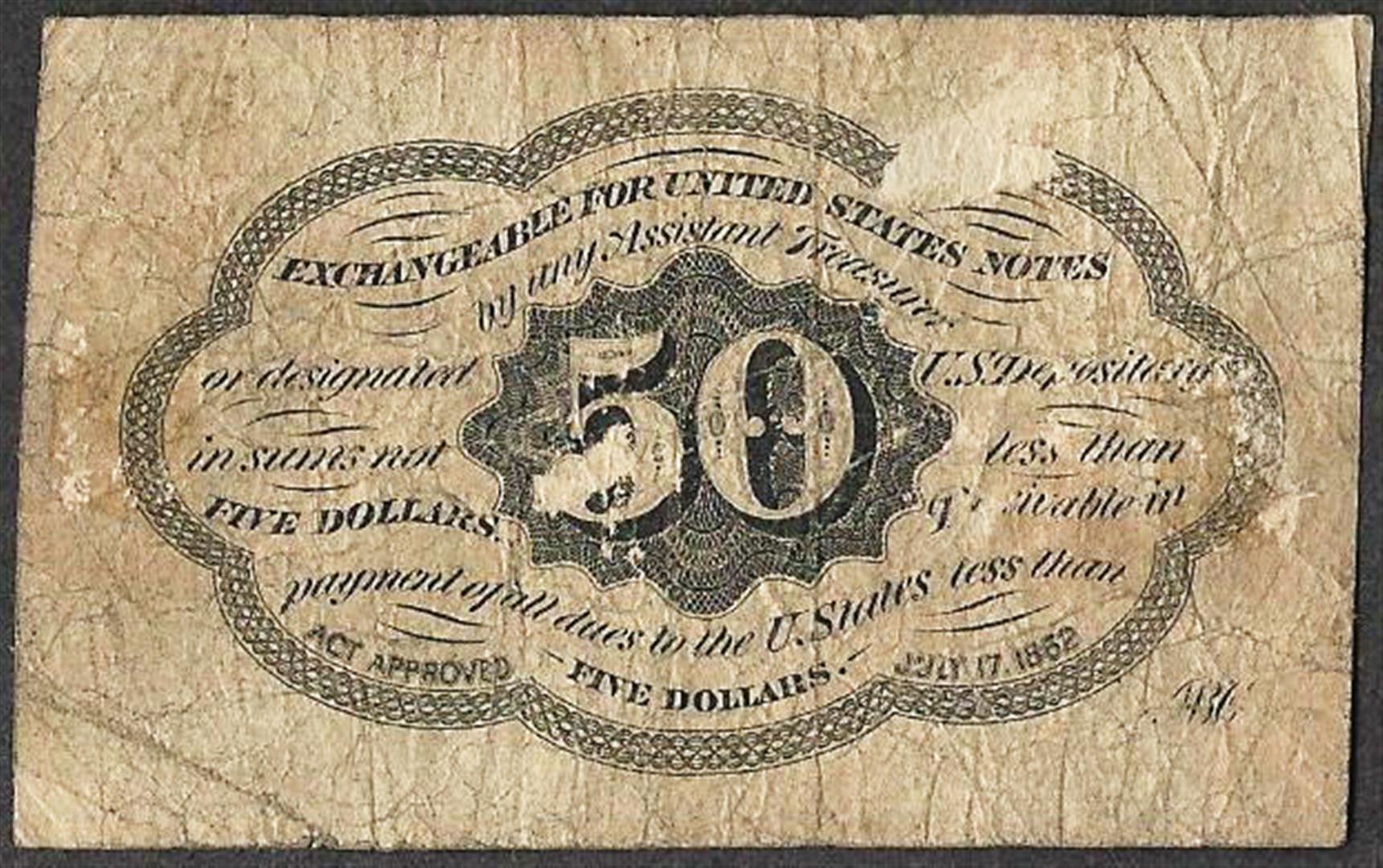 One 1862 First Issue 50 Cents Fractional Currency Note.