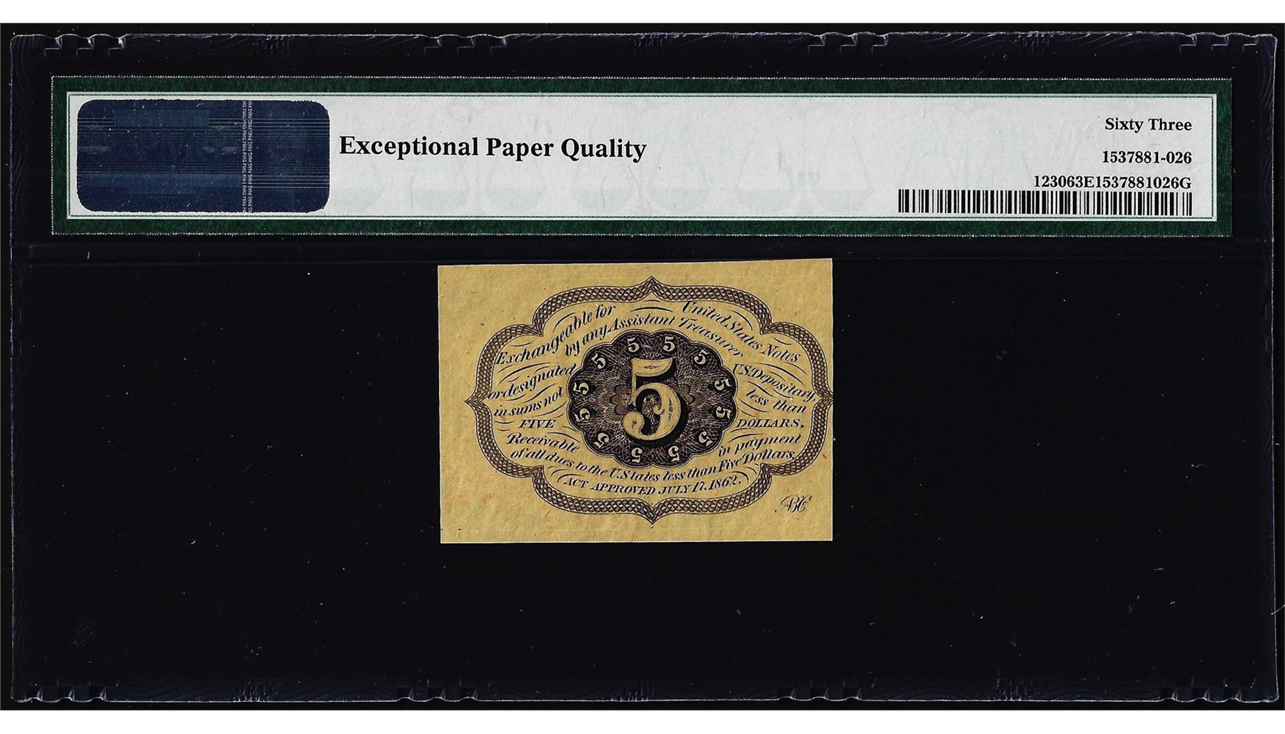 1862 First Issue Five Cents Fractional Currency Note PMG Choice Uncirculated 63EPQ