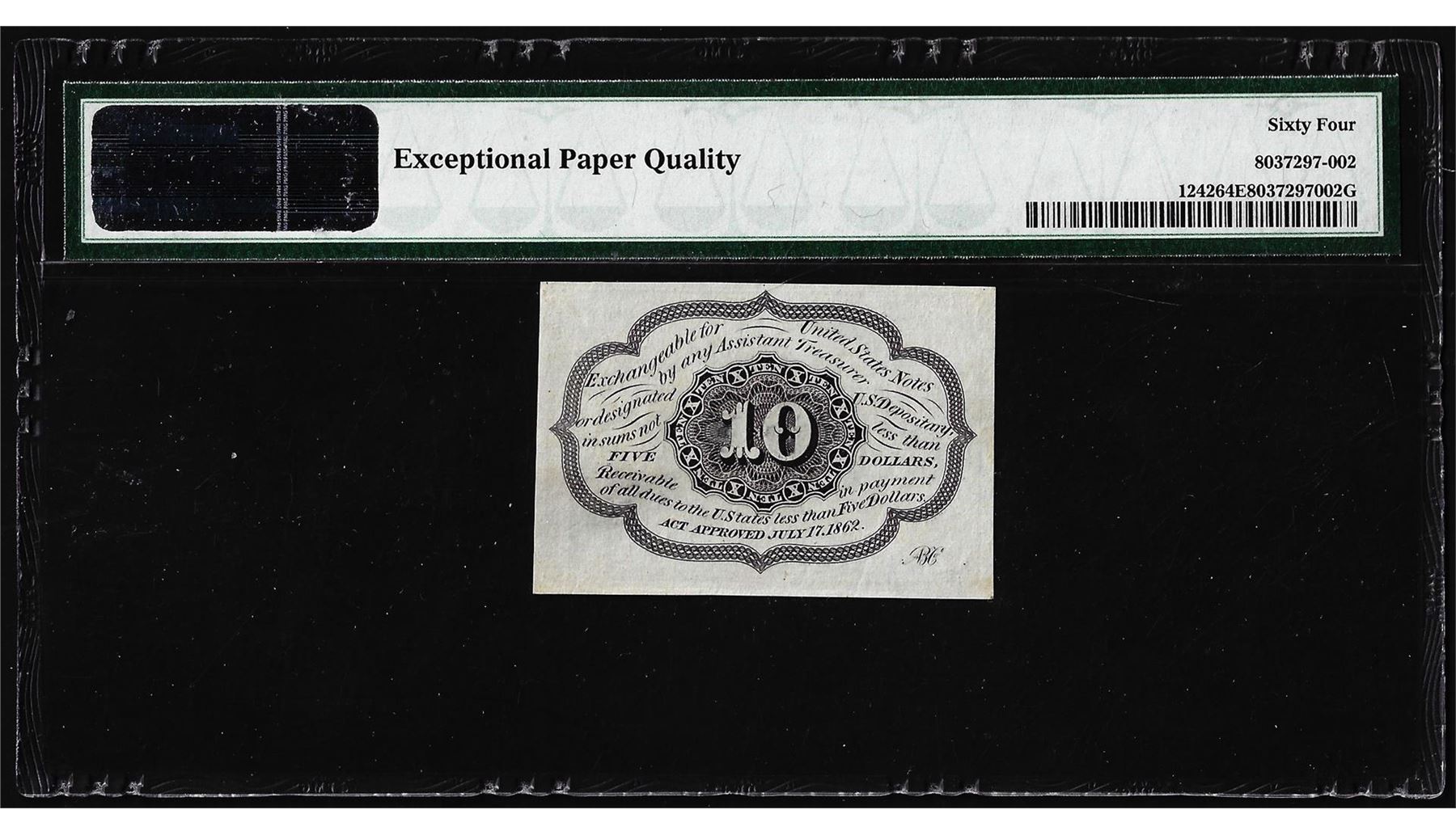 1862 First Issue Ten Cent Fractional Currency Note Fr.1242 PMG Ch. Uncirculated 64EPQ