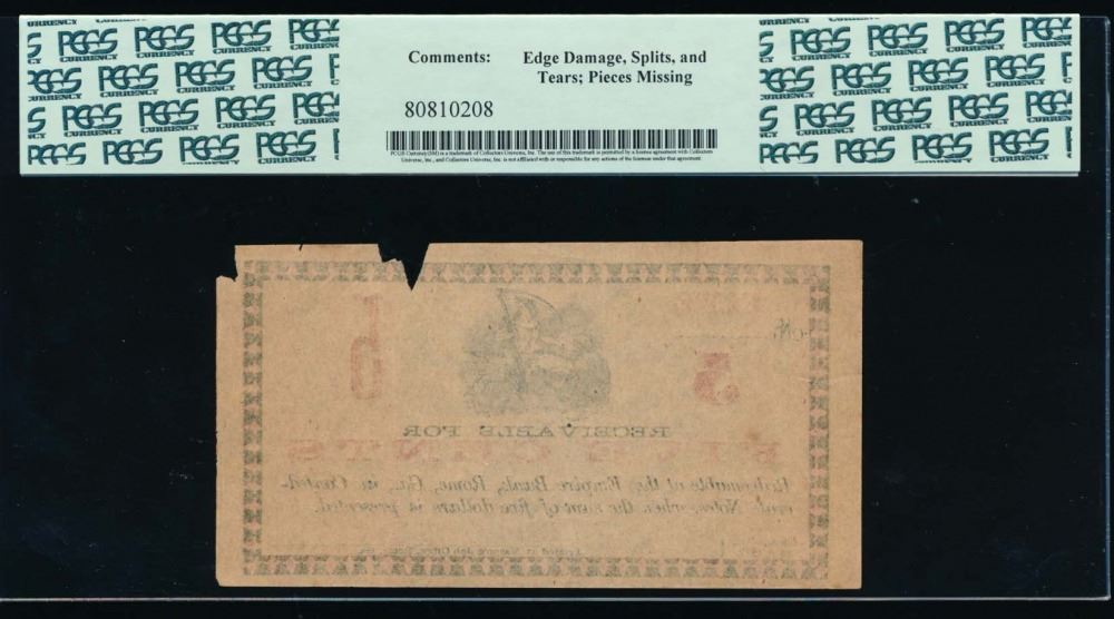 One 1862 Five Cent Empire Bank Note PCGS 50.