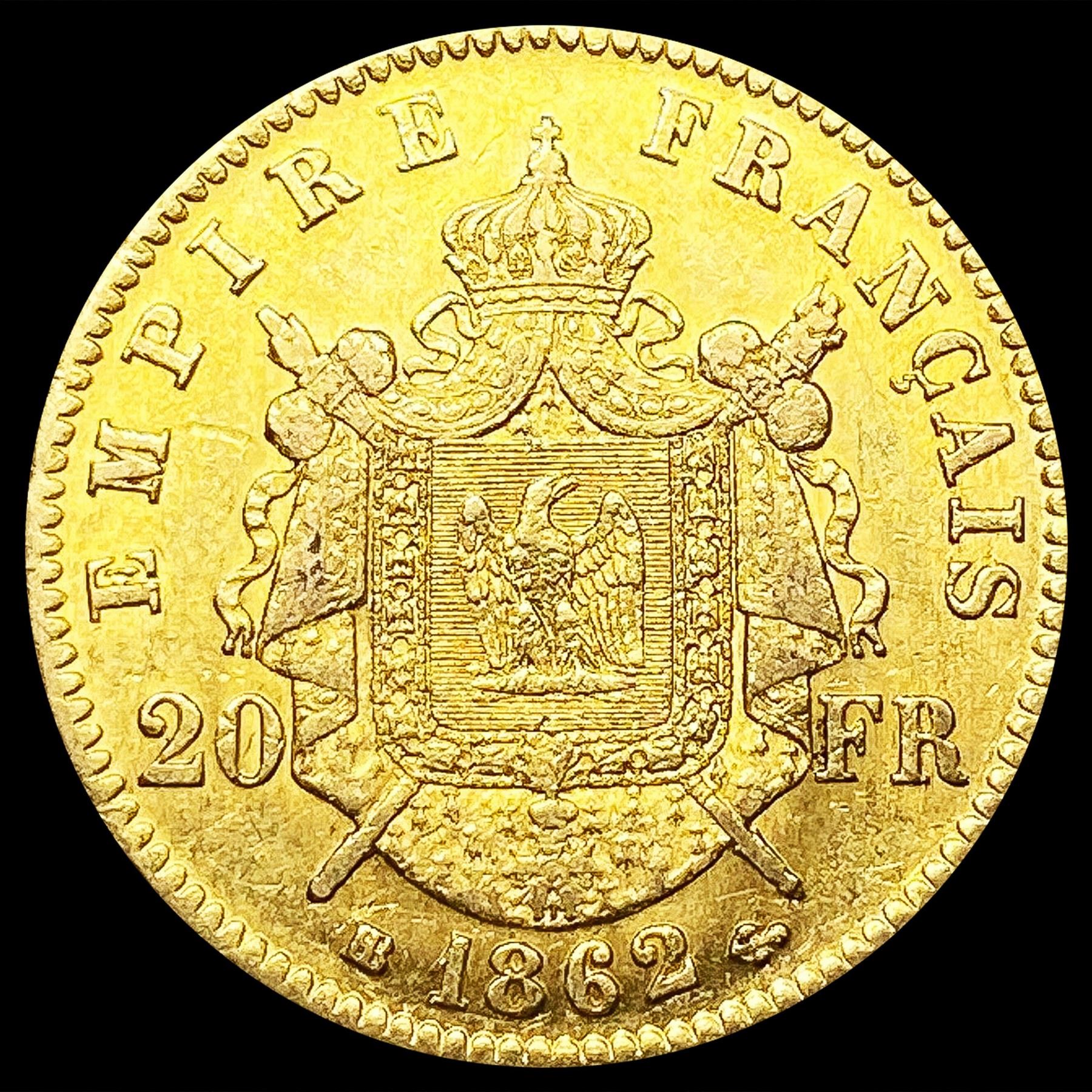 1862 France .1867oz Gold 20 Francs CLOSELY UNCIRCU