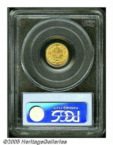 <B>1862<G$1> MS64 PCGS.</B></I> This popular Civil War date has lovely peach-gold patina imbued with subtle greenish and tan undertones. The surfaces emit radiant luster, and display just a couple of trivial marks on Liberty's cheek and in the left (facing) obverse field. The design elements are adequately struck, except that portions of Liberty's hair are soft.