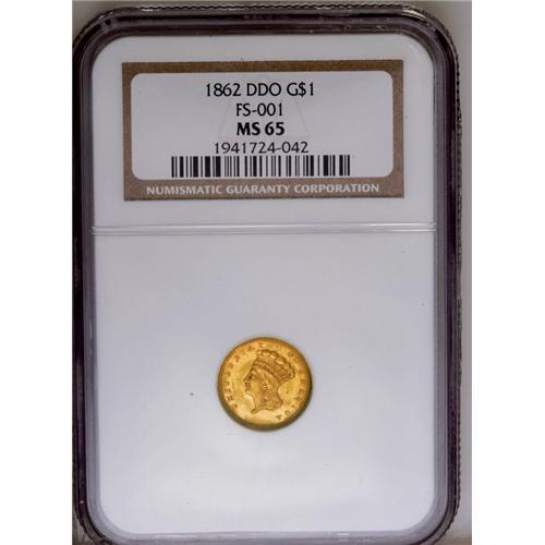 1862 G$1 MS65 NGC. FS-001, Breen-6074. Doubled Die Obv