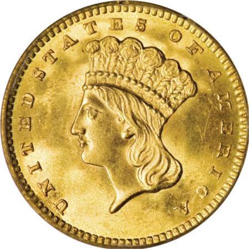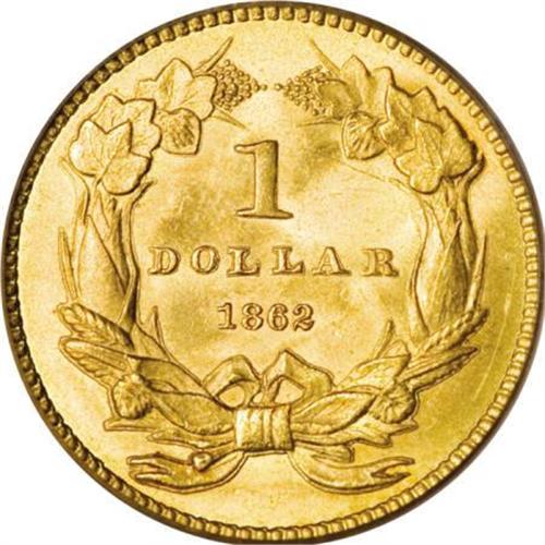 <B>1862 G$1 MS65 PCGS.</B></I> With a mintage of more than 1 million coins, the 1862 gold dollar is one of the most common dates of the series. Perusal of the PCGS/NGC population data indicates that several hundred Mint State examples have been certified through MS64. The date becomes somewhat more difficult in MS65 and finer grades. The Gem specimen in this lot displays gorgeous greenish-gold patina residing over scintillating luster, and a well executed strike imparts crisp and even definition over the design elements. The surfaces are minimally marked for an MS65. Population: 69 in 65, 27 finer (8/07).<BR><BR><B>Coin Engraver:</B> James B. Longacre<BR><BR><b>Shipping:</b> Coins & Currency (<a target="_blank" href="http://www.heritageauctions.com/common/shipping.php">view shipping information</a>)