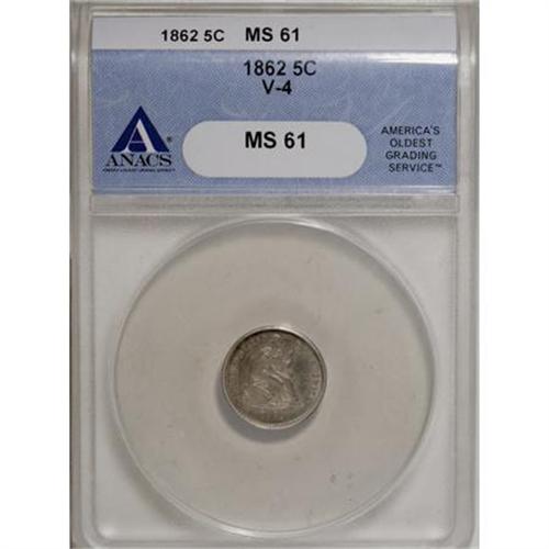 <B>1862 H10C MS61 ANACS.</B></I> V-4. NGC Census: (26/456). PCGS Population (15/418). Mintage: 1,492,550. Numismedia Wsl. Price for NGC/PCGS coin in MS61: $133. (#4381)<BR><I>From The Al Blythe Collection of Half Dimes.</B></I><BR><BR><B>Coin Engraver:</B> Christian Gobrecht<BR><BR><b>Shipping:</b> Coins & Currency (<a target="_blank" href="http://www.heritageauctions.com/common/shipping.php">view shipping information</a>)