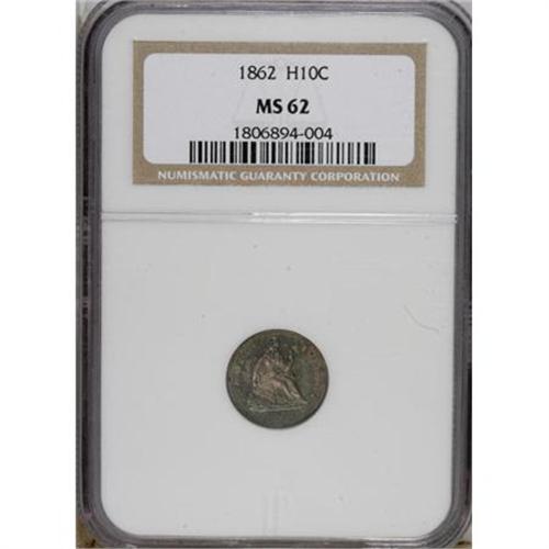 1862 H10C MS62 NGC. NGC Census: (59/389). PCGS Pop