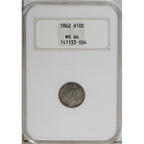 1862 H10C MS64 NGC. Choice and appealing with reddish-