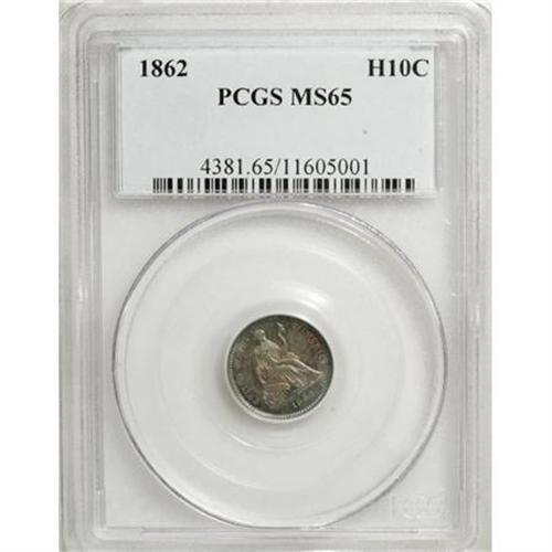 <B>1862 H10C MS65 PCGS.</B></I> PCGS Population (66/54). NGC Census: (88/54). Mintage: 1,492,550. Numismedia Wsl. Price for NGC/PCGS coin in MS65: $900. (#4381)<BR><BR><B>Coin Engraver:</B> Christian Gobrecht<BR><BR><b>Shipping:</b> Coins & Currency (<a target="_blank" href="http://www.heritageauctions.com/common/shipping.php">view shipping information</a>)