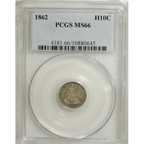 <B>1862 H10C MS66 PCGS.</B></I> A lustrous piece with slate-gray patina that has traces of gold and russet. A boldly struck example of this popular Civil War issue. Population: 33 in 66, 21 finer (5/07).<BR><BR><b>Shipping:</b> Coins & Currency (<a target="_blank" href="http://www.heritageauctions.com/common/shipping.php">view shipping information</a>)