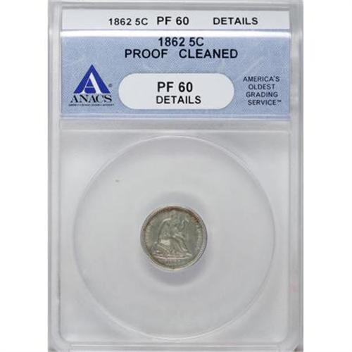 <B>1862 H10C --Cleaned--ANACS PR60 Details.</B></I> NGC Census: (0/143). PCGS Population (2/157). Mintage: 550. (#4445)<BR><I>From The Al Blythe Collection of Half Dimes.</B></I><BR><BR><B>Coin Engraver:</B> Christian Gobrecht<BR><BR><b>Shipping:</b> Coins & Currency (<a target="_blank" href="http://www.heritageauctions.com/common/shipping.php">view shipping information</a>)