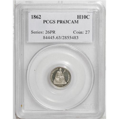 1862 H10C PR63 Cameo PCGS. This is a vibrant proof wit