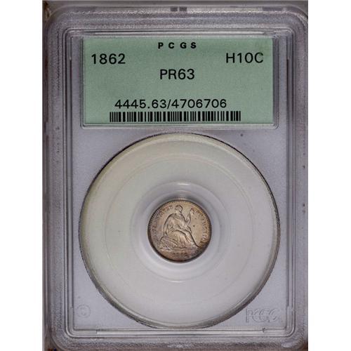 1862 H10C PR63 PCGS. A razor-sharp specimen with lumin 1862[H10C] PR63 PCGS.