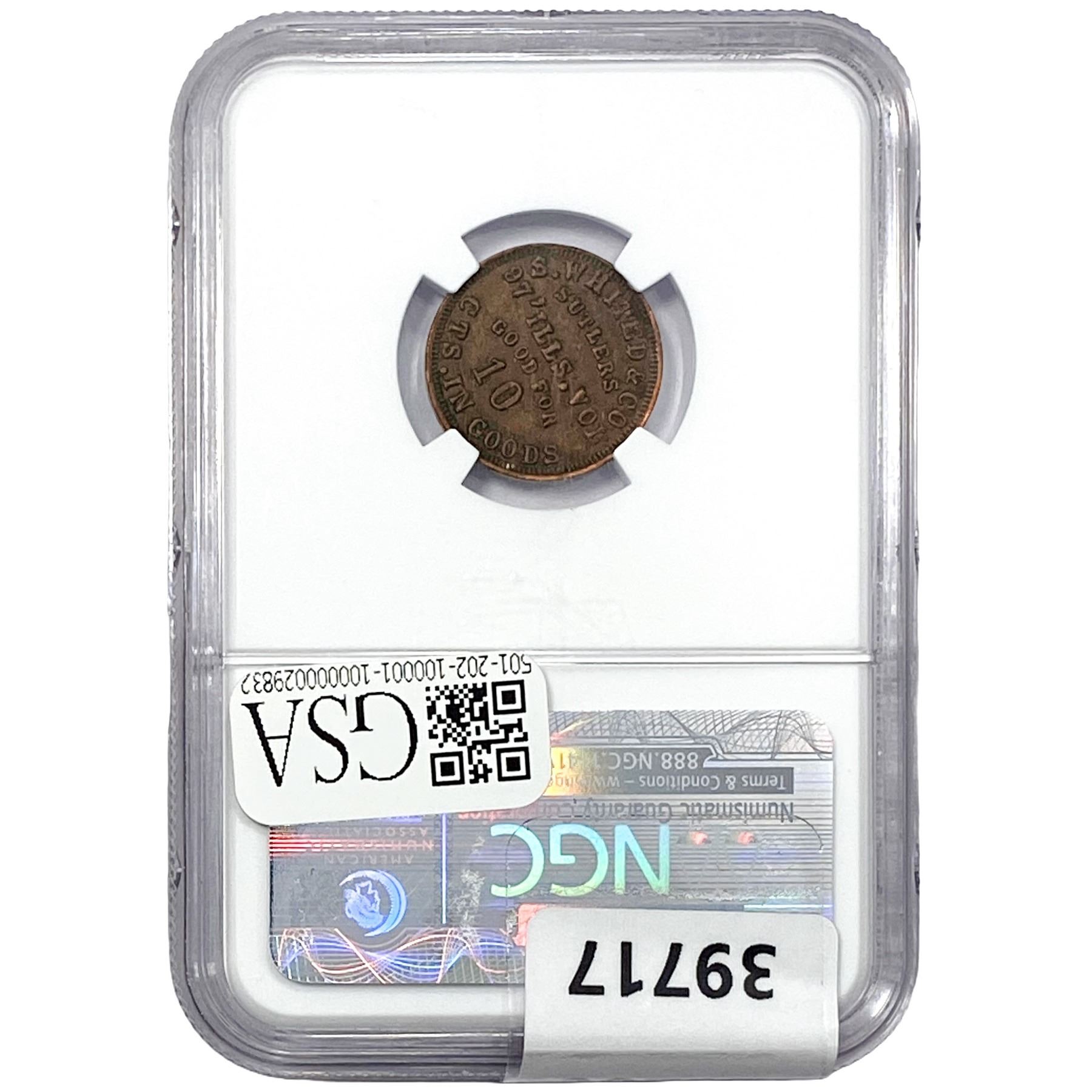 1862 IL Token S-Q10C Sutler NGC XF45 BN Whited&Co