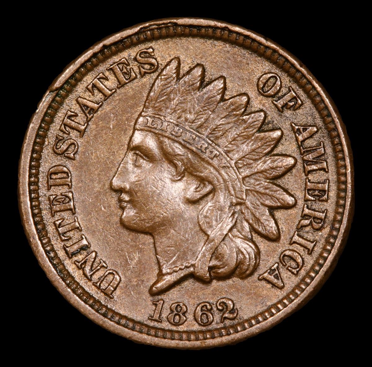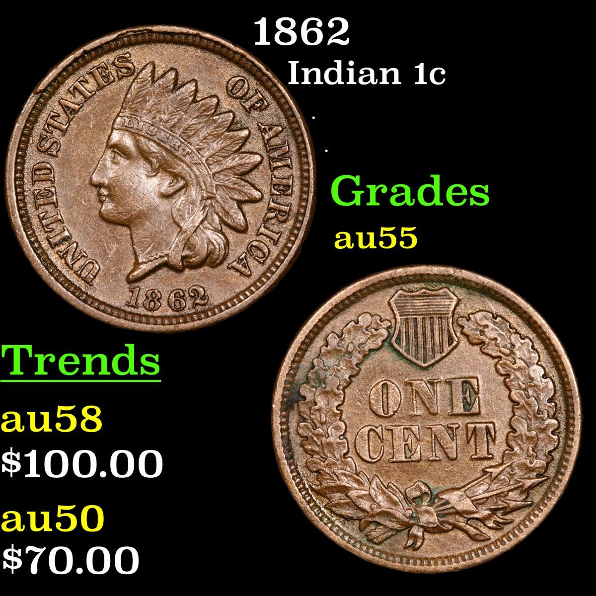 1862 . . Indian Cent 1c Grades Choice AU.