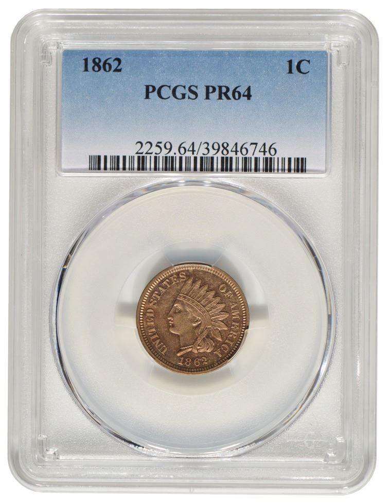 One 1862 Indian Cent Coin PCGS PR64.