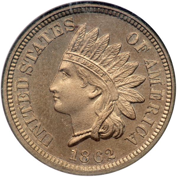 1862 Indian Head Cent. NGC graded Proof 67 Cameo. A splendid pinkish-nickel gem proof exhibiting slight iridescense. The 1862, although one of the more available dates in the copper-nickel Proof series, is also one of the better produced issues. This piece represents the best of the best. The fields are well mirrored, impressively so for a copper-nickel issue, and the fields are nearly perfect. Supreme beauty carries over into the delicate toned color, each side displays original hues. A wonderfully preserved and visually enticing Gem Proof 67 Indian Cent. A truly great looking specimen. Pop 4; 1 in 68 Cameo.