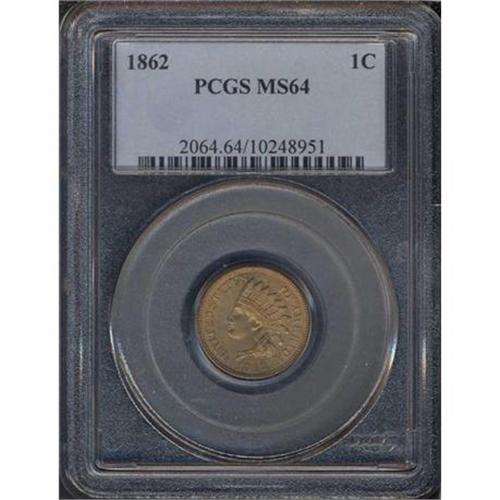 <b>1862 Indian Head Cent. PCGS graded MS64.</b> Choice with light dusky gold and brown toning <b>(PCGS # 2064)</b> <i>