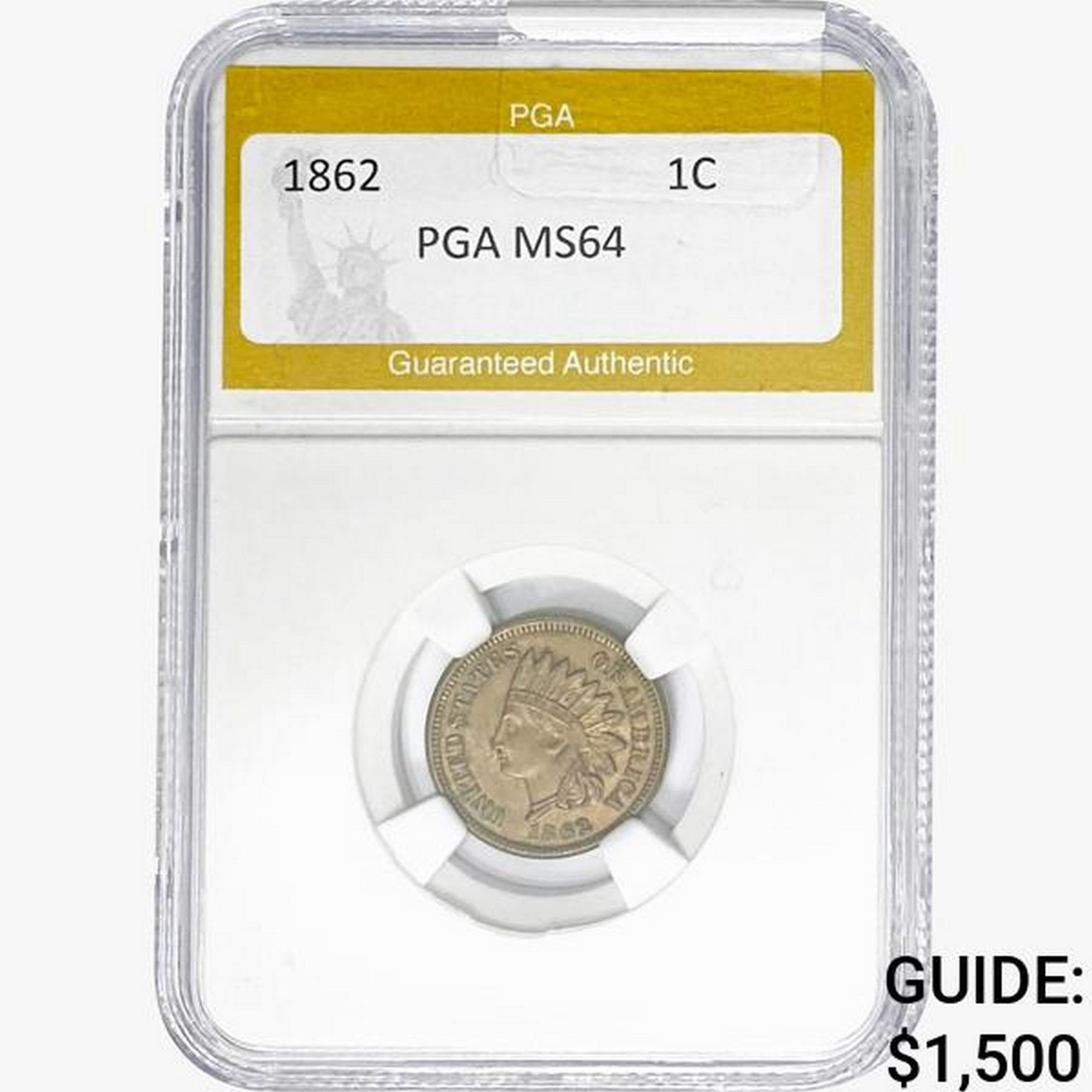 1862 Indian Head Cent PGA MS64