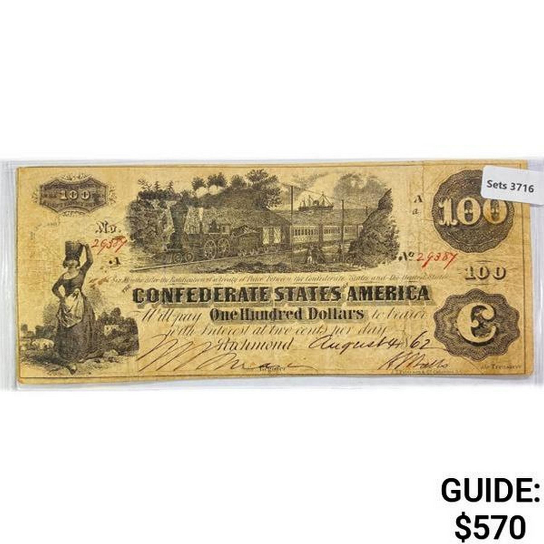 1862 LG $100 Confederate Note