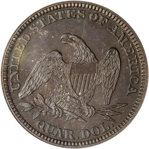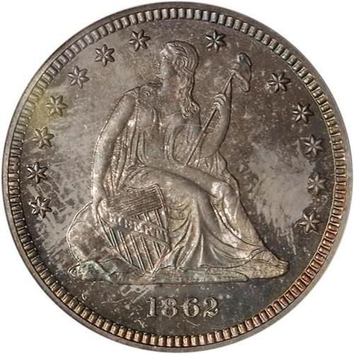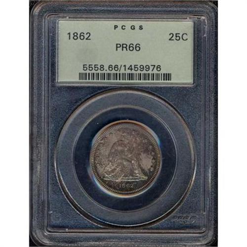 <b>1862 Liberty Seated Quarter Dollar. PCGS graded Proof 66.</b> The surfaces are deeply toned from the long term storage it received, topped off by mint frost on the devices that allows the mirrors to swirl around both sides. All minute detail fully evident on this bold 1862 strike. A very scarce coin in Proof 66 quality <b>(PCGS # 5558)</b> <i>