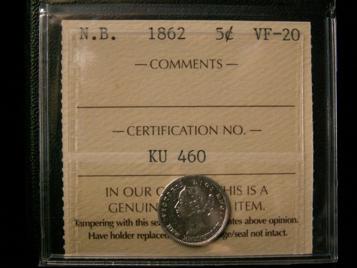 1862 N.B. 5¢ ICCS VF20. A decent example.