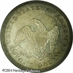 1862 S$1 MS64 NGC. Only 11,540 business strikes we <B>1862 S$1 MS64 NGC.</B></I> Only 11,540 business strikes were produced of this scarce Seated dollar. A significant percentage of the original mintage was melted or exported at the time of issue due to the uncertain outcome of the War of Northern Aggression. In fact, the impatient collector will find it much easier to locate a PR64 of this date than an MS64. This coin appears to have been struck shortly after the dies were polished as the fields are bright and semi-prooflike and die striations are seen in each field and on each side. Totally original and untampered, the surfaces show a smoky gray patina. There are no notable abrasions on either side and the design elements are just a touch from being fully struck. Population: 21 in 64, 1 finer (11/04). <BR><BR><B>Important notice:</B> Heritage usually auctions material at the rate of 200-250 lots per hour. On some occasions eBay Live bid software or the Internet may not be able to keep up with the pace of the auction. We recommend placing a realistic absentee bid now as insurance to avoid disappointment. Occasionally the auctioneer may eliminate or reject an eBay Live bid, and the auctioneer may also reopen a lot after the close of the eBay live bidding (usually because we missed an audience bid), and may reject your bid even if it shows you as the winning bidder. By bidding via eBay Live, you agree that Heritage may award the lot to another bidder at its sole discretion under the circumstances described above or any other reasonable circumstances. Since eBay bids are not shown to us until we open the lot on the floor, we treat those bids just like floor bids. In most cases the floor responds before the eBay bid is presented to us, due to Internet lag time, so for consistency we have made it a policy that floor bids are always considered first over tie eBay live bids. Also please note that all Heritage lots purchased through eBay Live carry a 20% Buyer's Premium. Please make sure you read the Terms and Conditions before you bid. This lot is being auctioned in conjunction with a live floor auction by Heritage Galleries & Auctioneers. All final auction and invoice information will be supplied by Heritage Galleries & Auctioneers, and all other information should be considered preliminary. Lot:6387