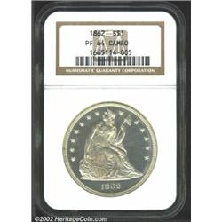 1862 S$1 PR64 Cameo NGC. A visually pleasing example of this low mintage Civil War issue. The fields