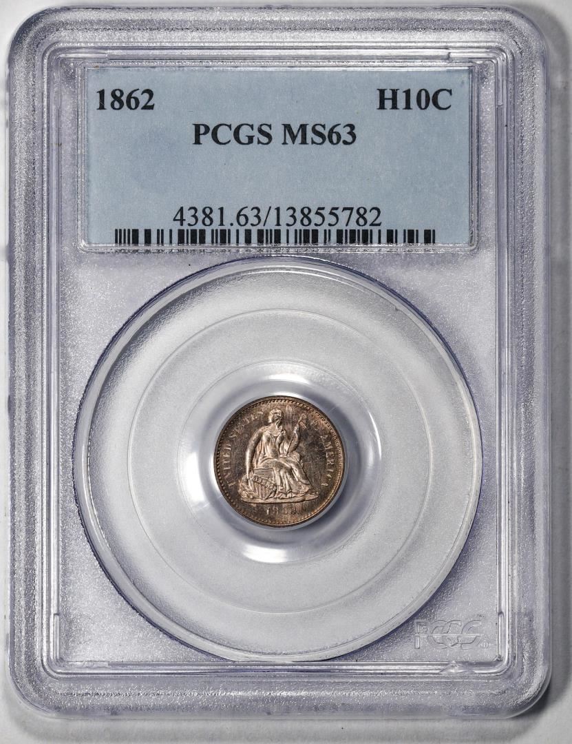 One 1862 Seated Liberty Half Dime Coin PCGS MS63. PCGS Graded.