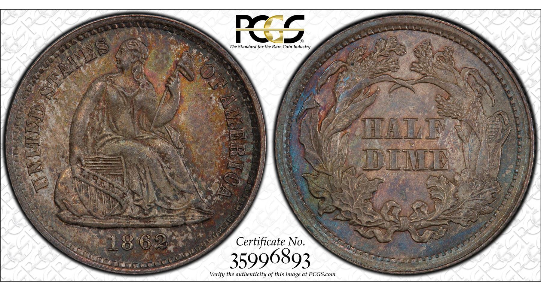 One 1862 Seated Liberty Half Dime Coin PCGS MS65 Nice Toning. PCGS Graded.