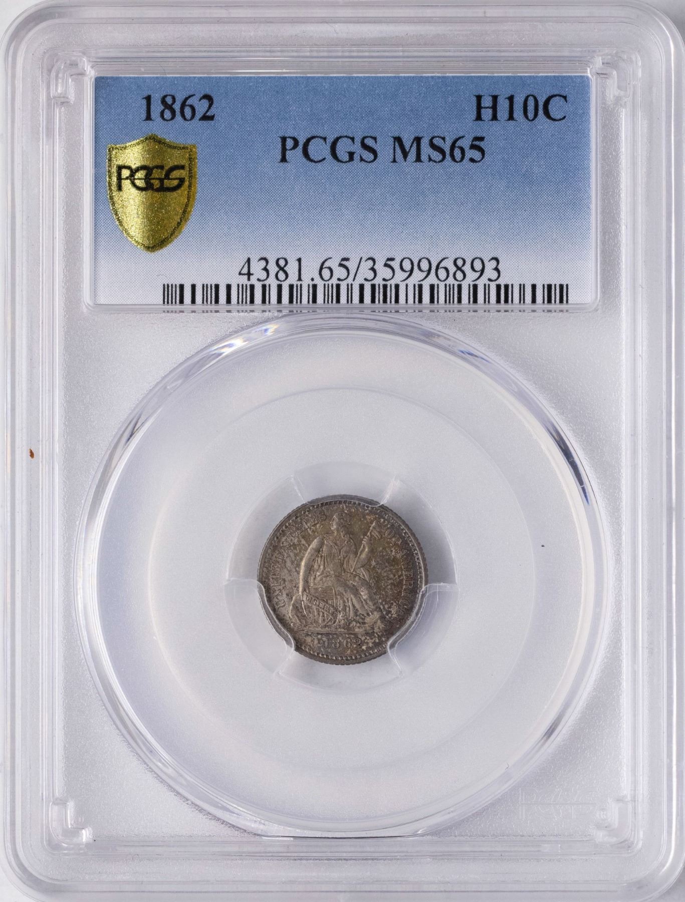 One 1862 Seated Liberty Half Dime Coin PCGS MS65 Nice Toning.
