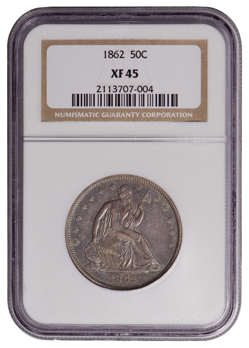 One 1862 Seated Liberty Half Dollar NGC XF45.
